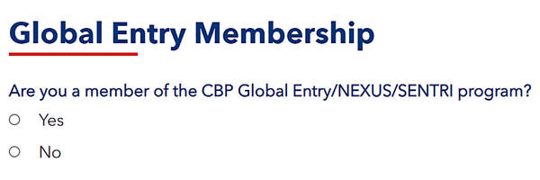 If you are participating in the U.S. Customs and Border Protection (CBP) Global Entry Program or any other Trusted Traveler Program for facilitated entry into the United States, please enter your membership number here.